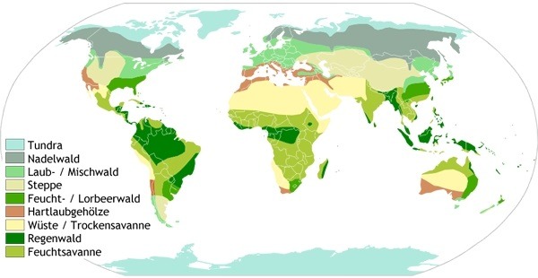 Die gesamte Landfläche der Erde wird auf 13,207 Mrd. Hektar geschätzt. Von dieser Fläche sind ca. 29,1 % (3,837 Mrd. Hektar) von Wald bedeckt, wobei die größten zusammenhängenden Waldgebiete in Asien, Südamerika und Zentralafrika zu finden sind. Während der Waldgürtel beiderseits des Äquators von tropischen und subtropischen Laubwald gebildet wird, beinhaltet der wirtschaftlich bedeutungsvollere nördliche Waldgürtel den Nadel- und Laubwald der gemäßigten Klimazone.