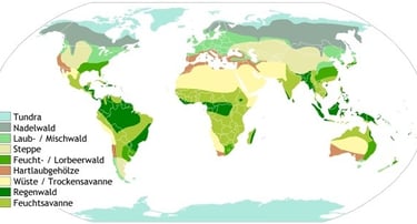 In Europa sind die nördlichen und östlichen Länder am stärksten, die westlichen am geringsten bewaldet. Nadelwälder herrschen in Nord-, Ost- und Mitteleuropa vor, Laubwälder in West- und Südeuropa.Die Waldgebiete der Erde haben aber nicht nur einen holzwirtschaftlichen Wert - Holzverbrauch weltweit jährlich ca. 2000 Mio. Festmeter - sondern sie sind auch für die klimatischen Verhältnisse der Landgebiete von weitreichender Bedeutung.Die Wälder erwirken eine gleichmäßige und lang anhaltende Bodenfeuchte, reinigen die Luft und erhöhen deren Feuchtesatz (1 Hektar Buchenwald verdunstet an einem Sommertag ca. 30.000 Liter Wasser). Weiterhin brechen die Wälder die Gewalt der Stürme, schützen den Mutterboden gegen Erosion und sind für den Menschen ein unersetzliches Erholungsgebiet. (Kollmann [1] weist darauf hin, dass der Bewaldungsgrad eines Landes nicht unter 20 % sinken darf,wenn die Entfaltung der Menschen in einer harmonischen Umwelt geschehen soll).